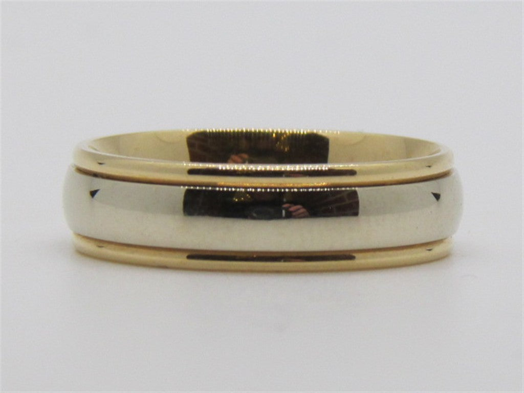 14K MEN'S TWO TONE WEDDING ABND WITH WHITE GOLD CENTER AND YELLOW GOLD EDGES