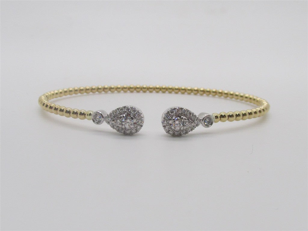 14KWY TWO TONE PEAR SHAPE ACCENTED BUJUKAN DIAMOND BANGLE BRACELET (SIZE 6)