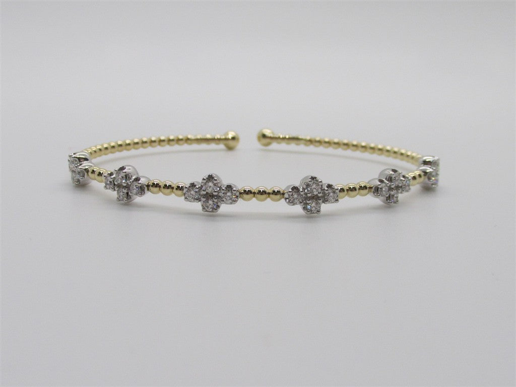 Lady's Two Tone 14 Karat Diamond Clover Bujukan Bangle Bracelet Bracelet