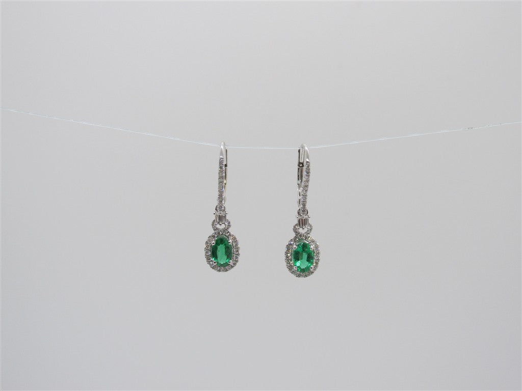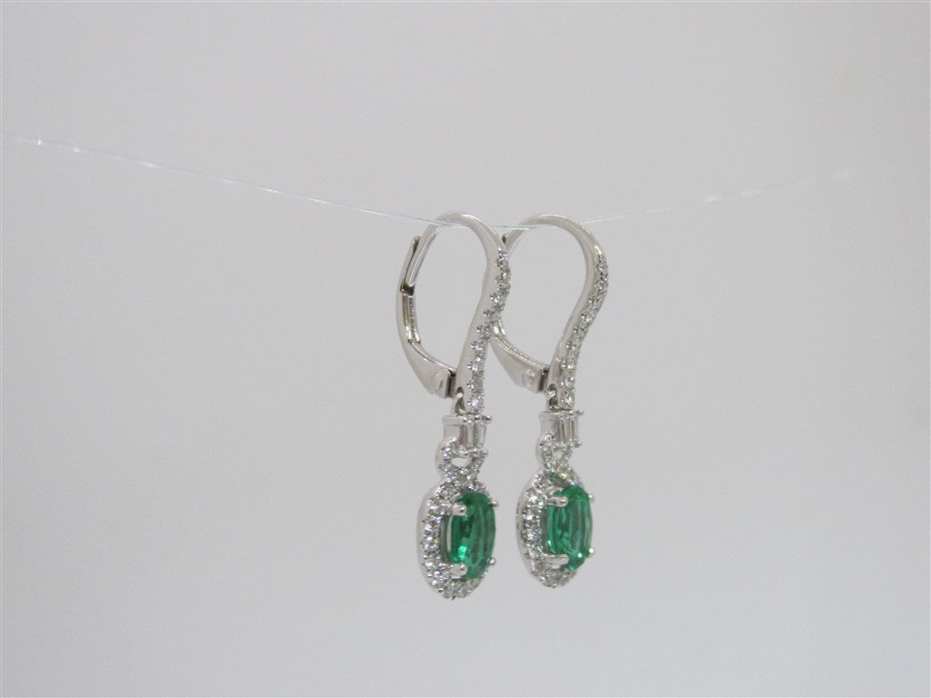 Lady's White 18 Karat Fancy Emerald and Diamond Dangle Earrings