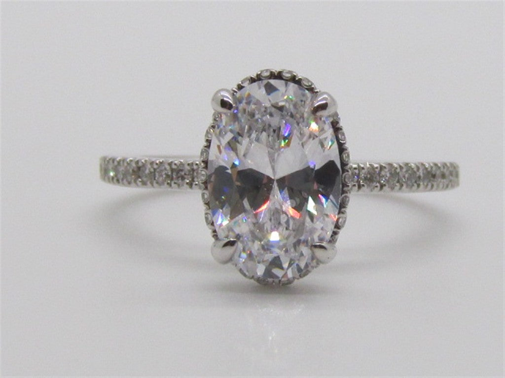14KW DIAMOND UNDERHALO AND SHANK ENGAGEMENT RING CONSISTING OF: ONE OVAL CZ IN CENTER MEASURING: 10.5X7MM, 50 ROUND DIAMONDS IN UNDERHALO AND SHANK = .30CTTW SI G/H