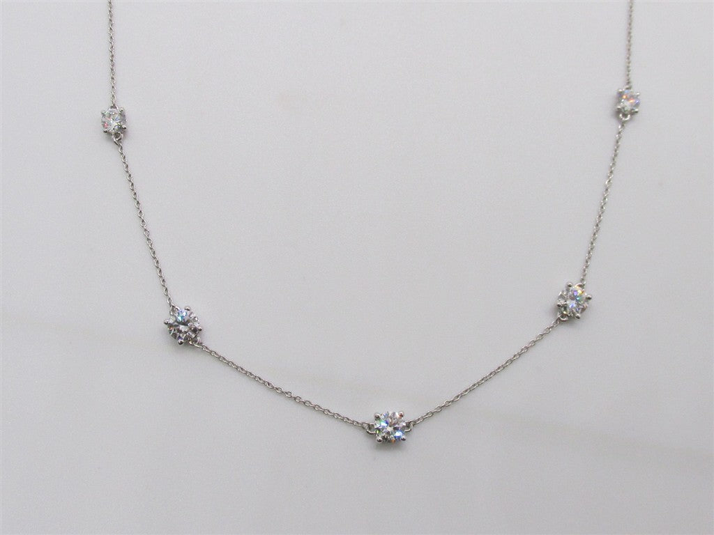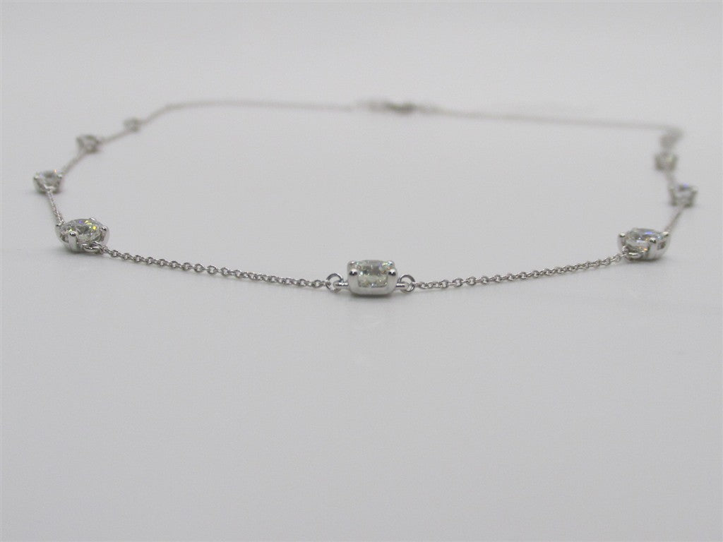 Lady's White 14 Karat Lab Diamond Station Necklace