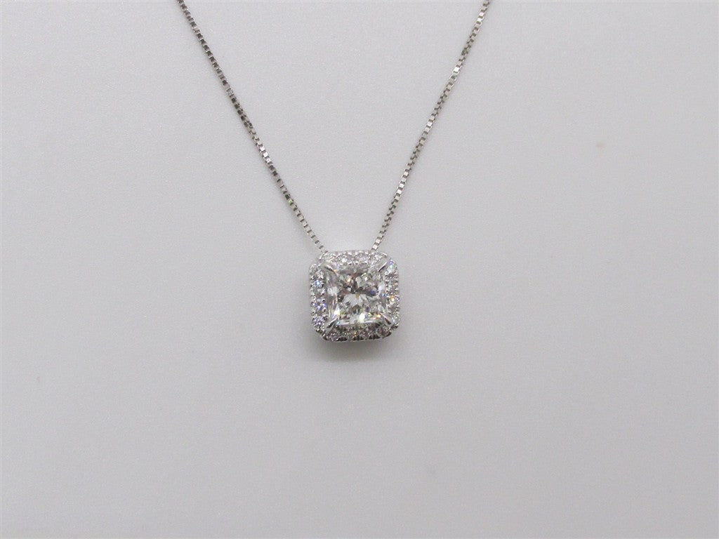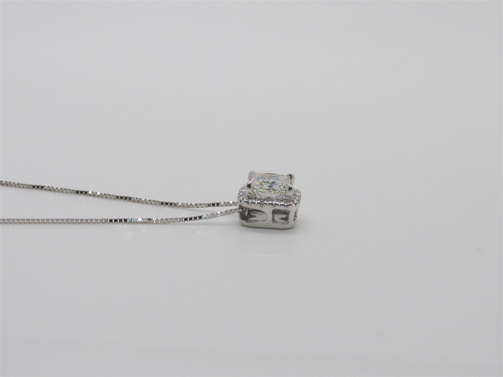 Lady's White 14 Karat Lab Princess Cut Halo Diamond Pendant