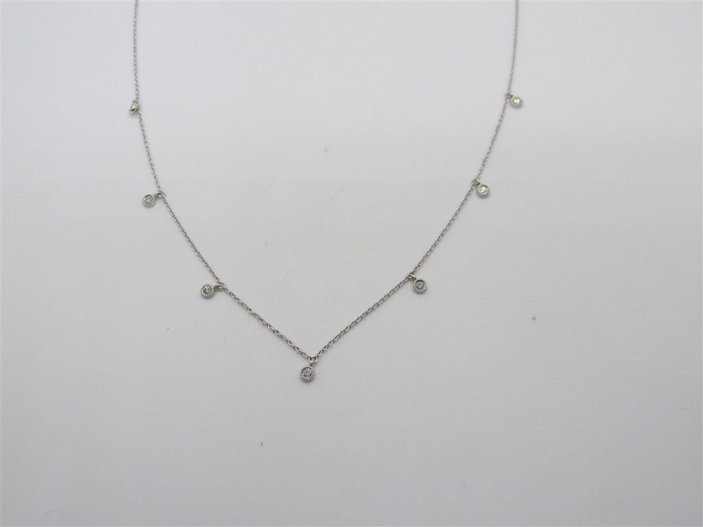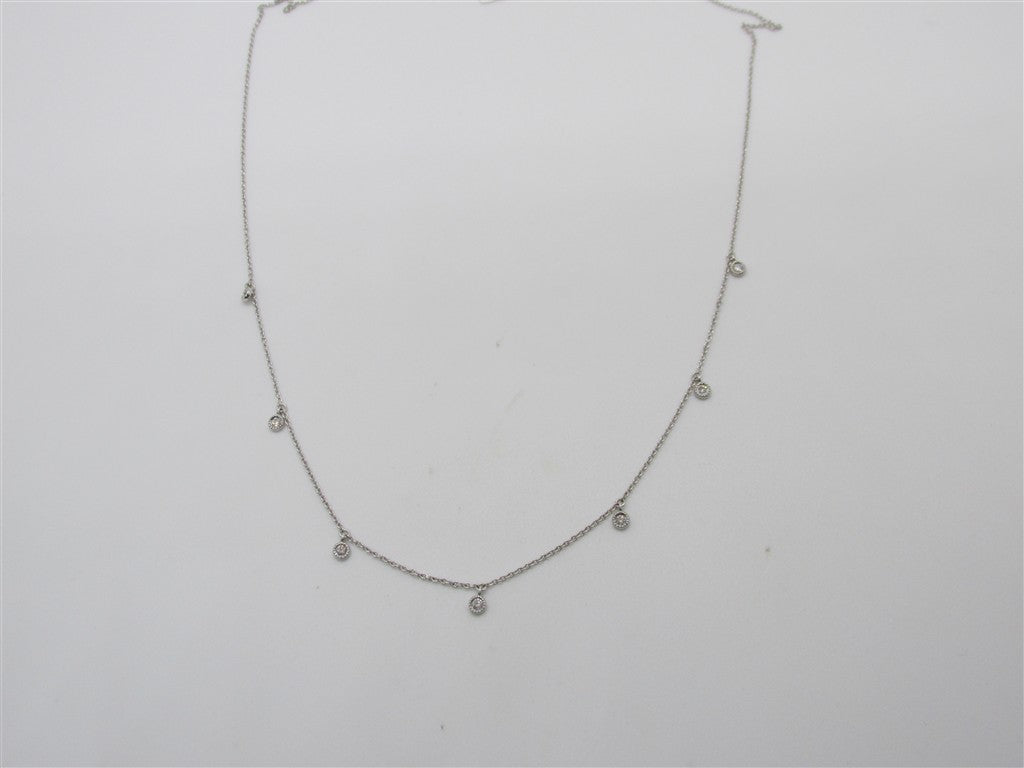 Lady's White 14 Karat 7 Station Diamond Necklace