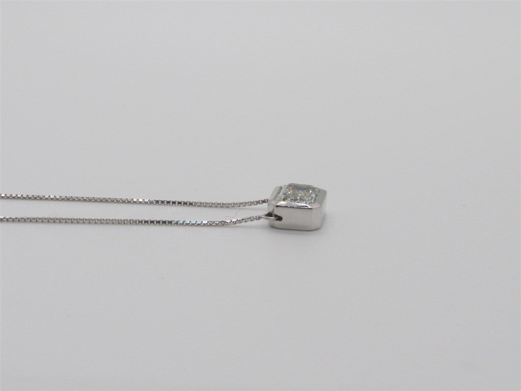 Lady's White 14 Karat Lab Emerald Cut Bezel Pendant