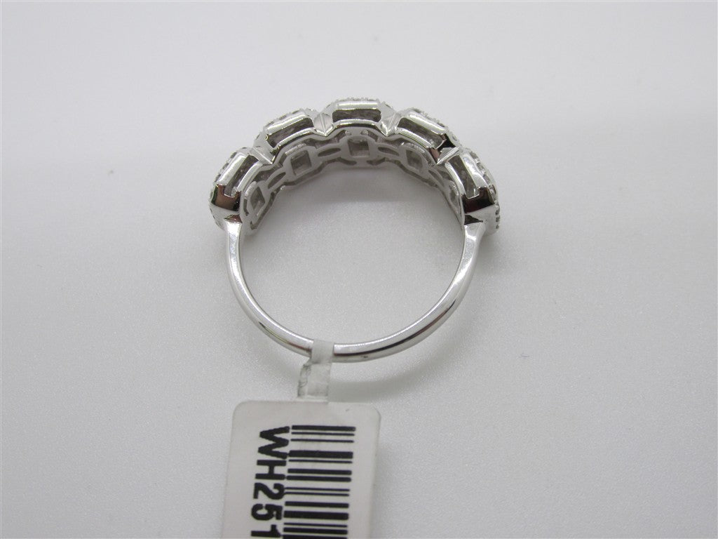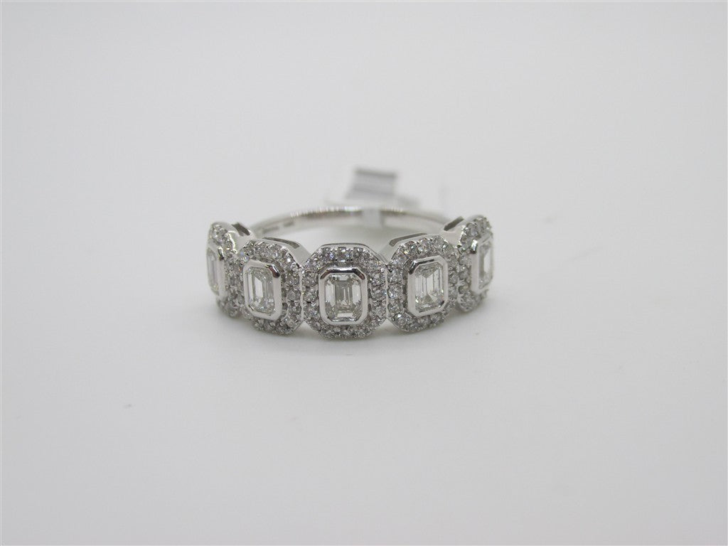 Lady's White 14 Karat Fancy Emerald Cut and Round Diamond Fashion Band