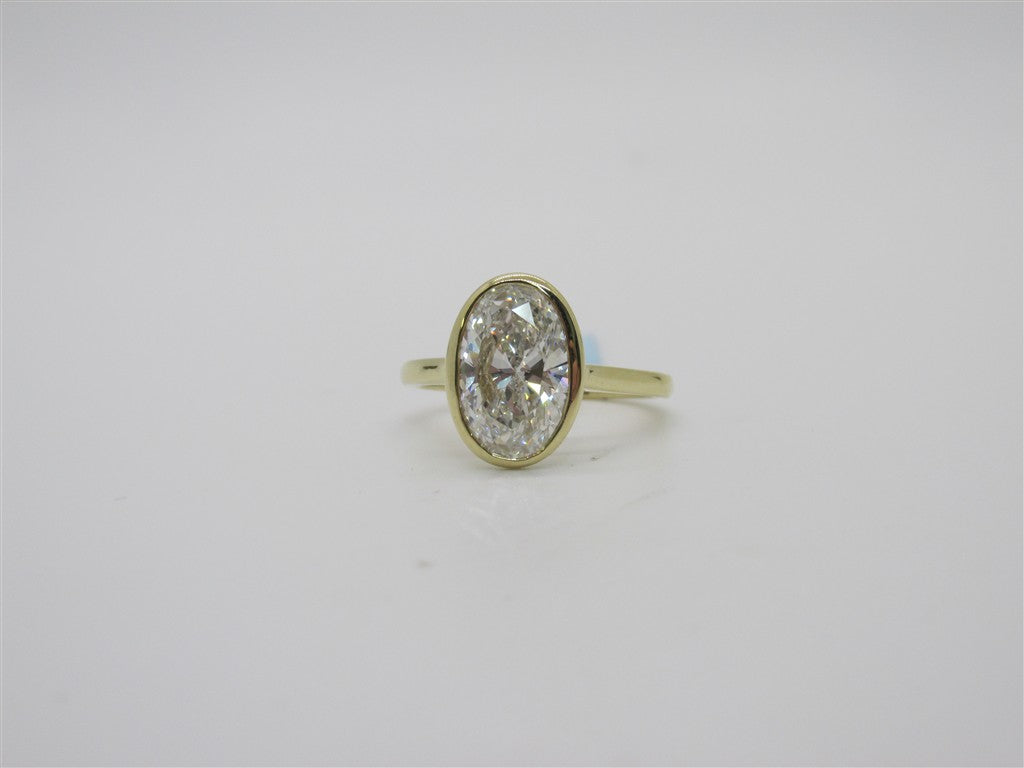 Yellow 14 Karat Lab Oval Bezel Set Engagement Ring