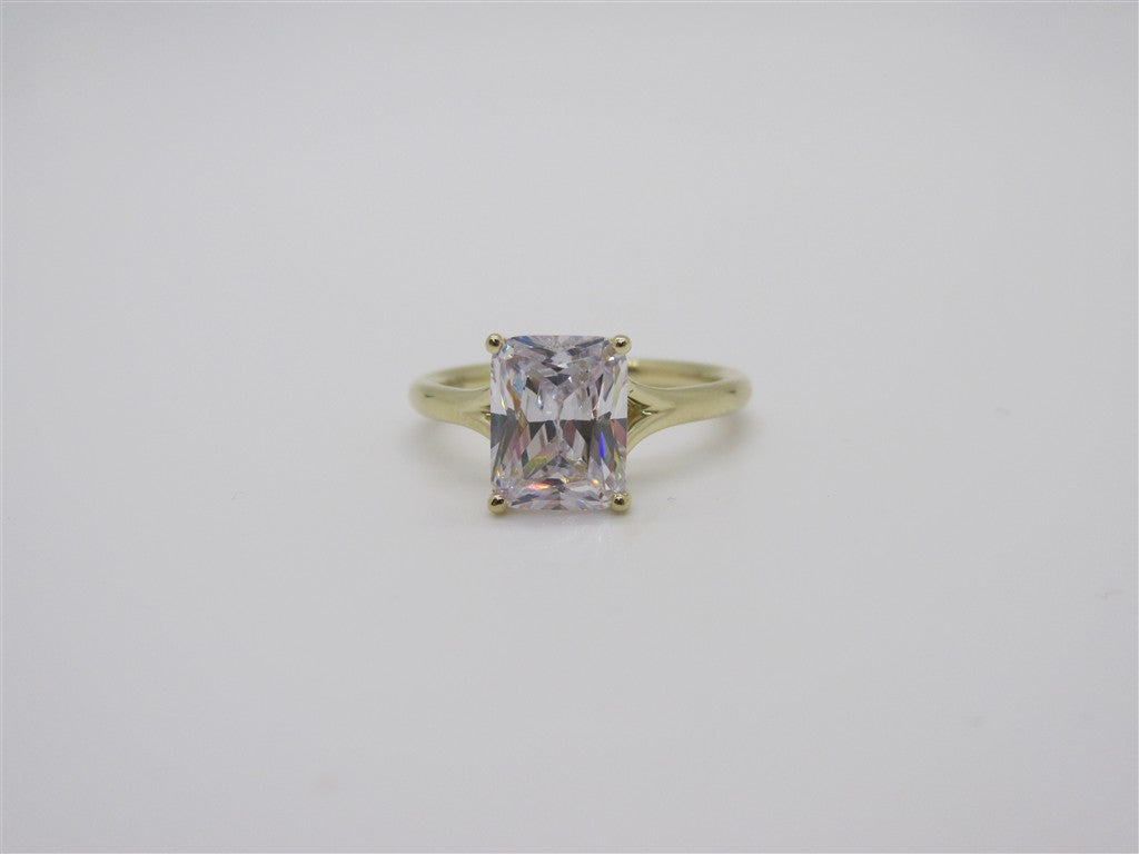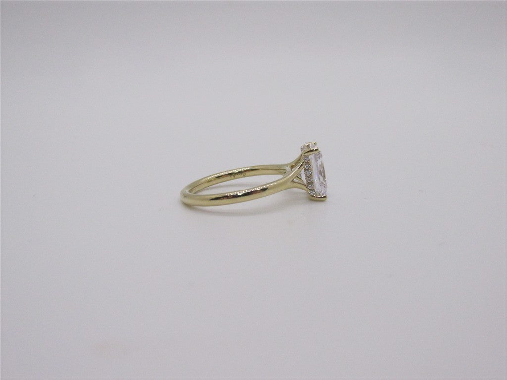 14KY RADIANT ENGAGEMENT RING WITH HIDDEN HALO AND SPLIT SHANK CONSISTING OF 20 RBC DIA WEIGHING APPROX .09CTW SI GH AND ONE RADIANT CZ MEASURING APPROX 8.5X6.5MM