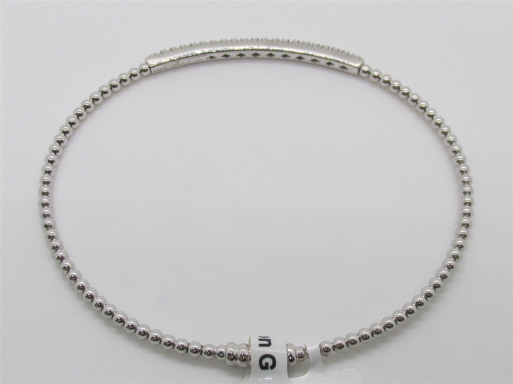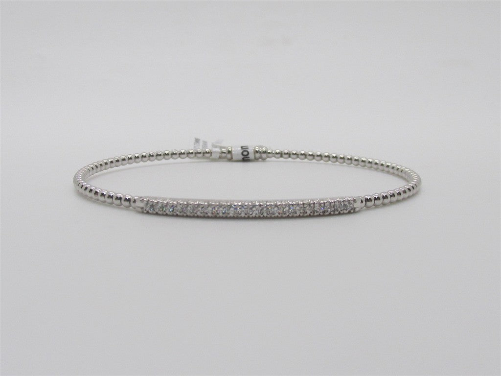 18KW BEADED DIAMOND BANGLE WITH DIAMOND BAR IN CENTER WITH TWENTY ROUND BRILLIANT CUT DIAMONDS = 0.27CTTW VS F/G