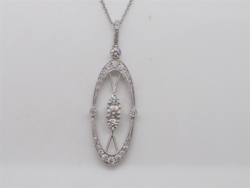 18KW FANCY OPEN OVAL SHAPED DIAMOND PENDANT CONSISTING OF 34 ROUND BRILLIANT CUT DIAMONDS WITH MILGRAIN ACCENTS 0.61CTTW VS FG SUSPENDED ON A 18KW 16-18" CABLE CHAIN WITH LOBSTER CLASP "SIMON G" COLLECTION TP262