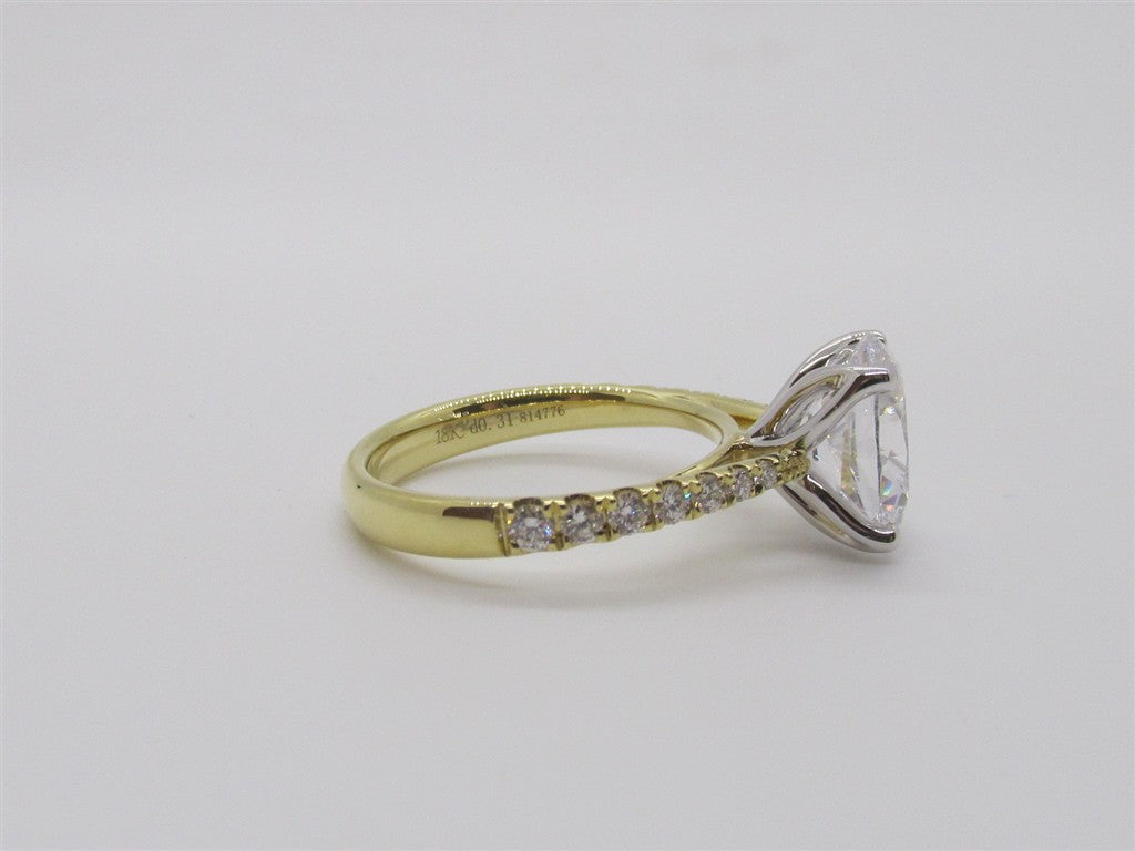 18KY CATHEDRAL STYLE DIAMOND SEMI MOUNT ENGAGEMENT RING WITH GRADUATING SHANK