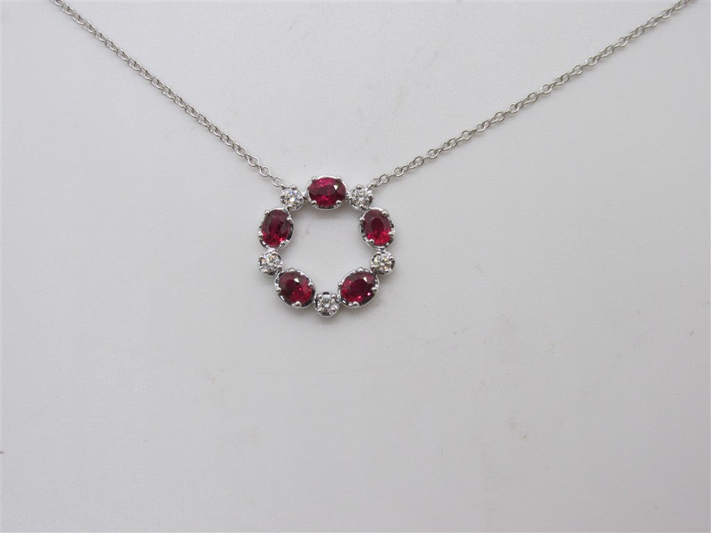 18KW RUBY AND DIAMOND CIRCLE PENDANT CONSISTING OF: