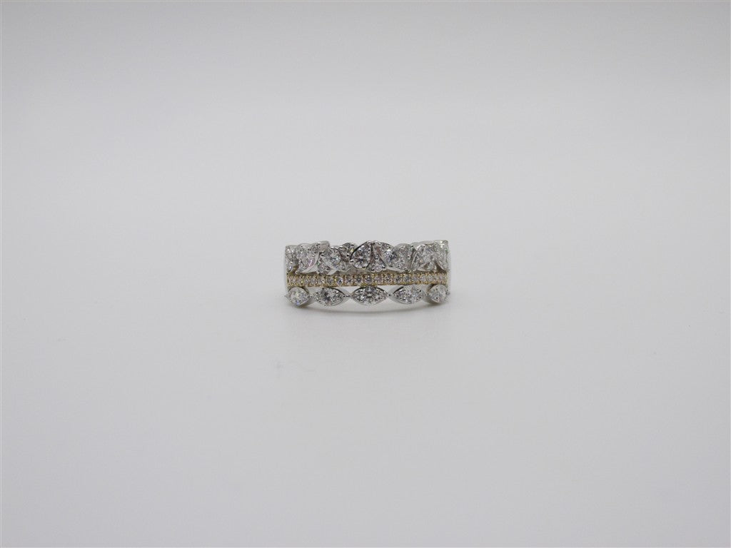 Lady's Two Tone 14 Karat Three Row Multi Shape Fashion Ring