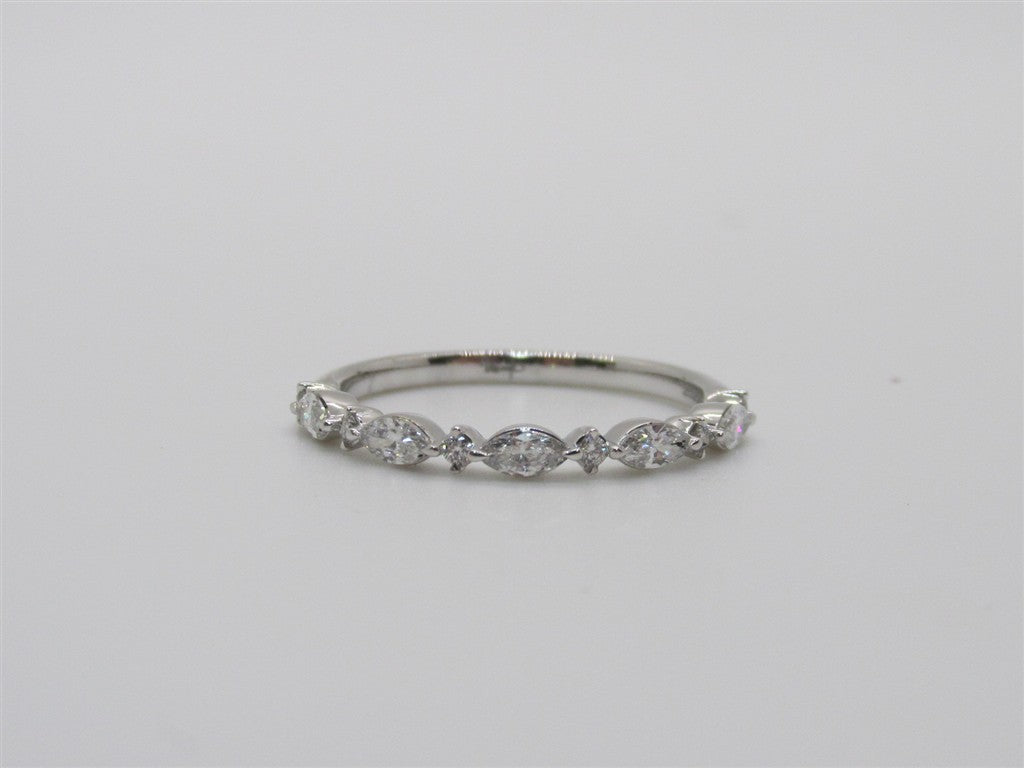 Lady's White 14 Karat Alternating Marquise and Round Diamond Band