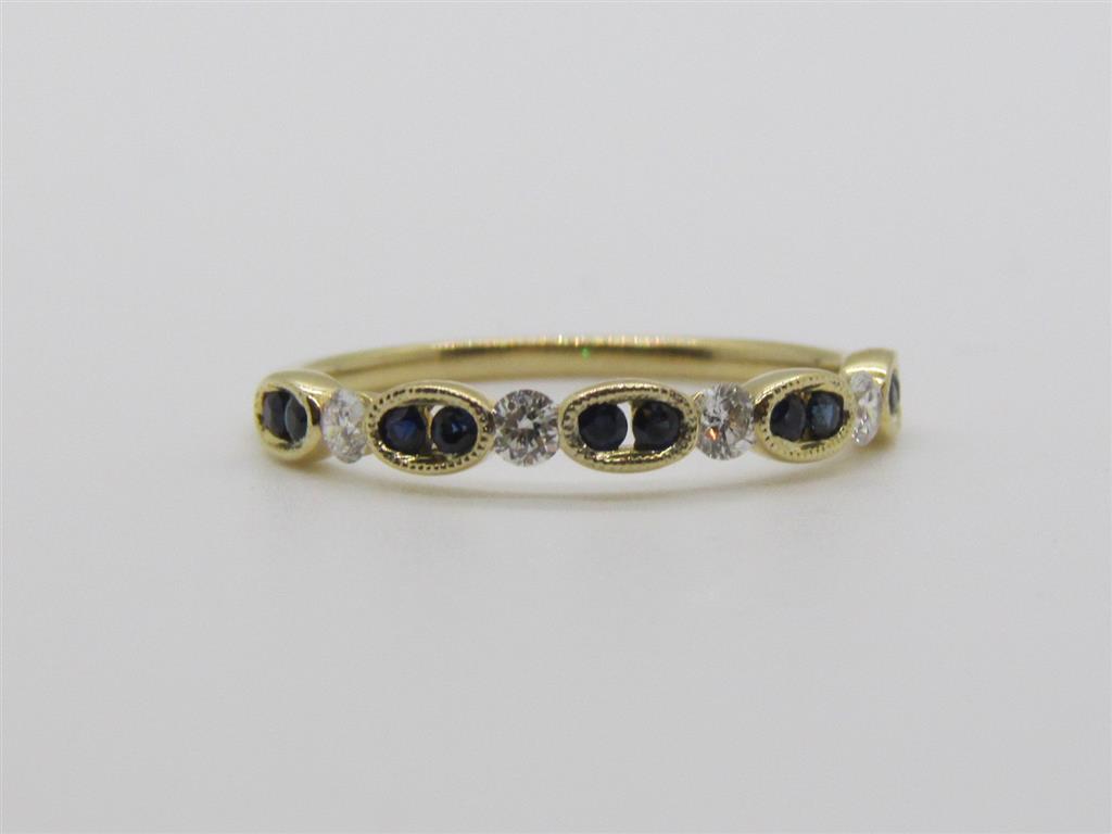 14KY SAPPHIRE AND DIAMOND STACKABLE BAND WITH FOUR ROUND DIAMONDS = .17CTTW AND TEN ROUND SAPPHIRES = .21CTTW LVBM12065S "UNEEK" COLLECTION