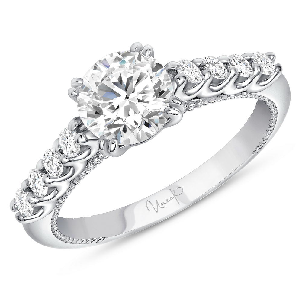 This us collection straight round engagement ring is stunning for your true love. Crafted with 8 round diamonds weighing 0.25 carats in a charming setting.