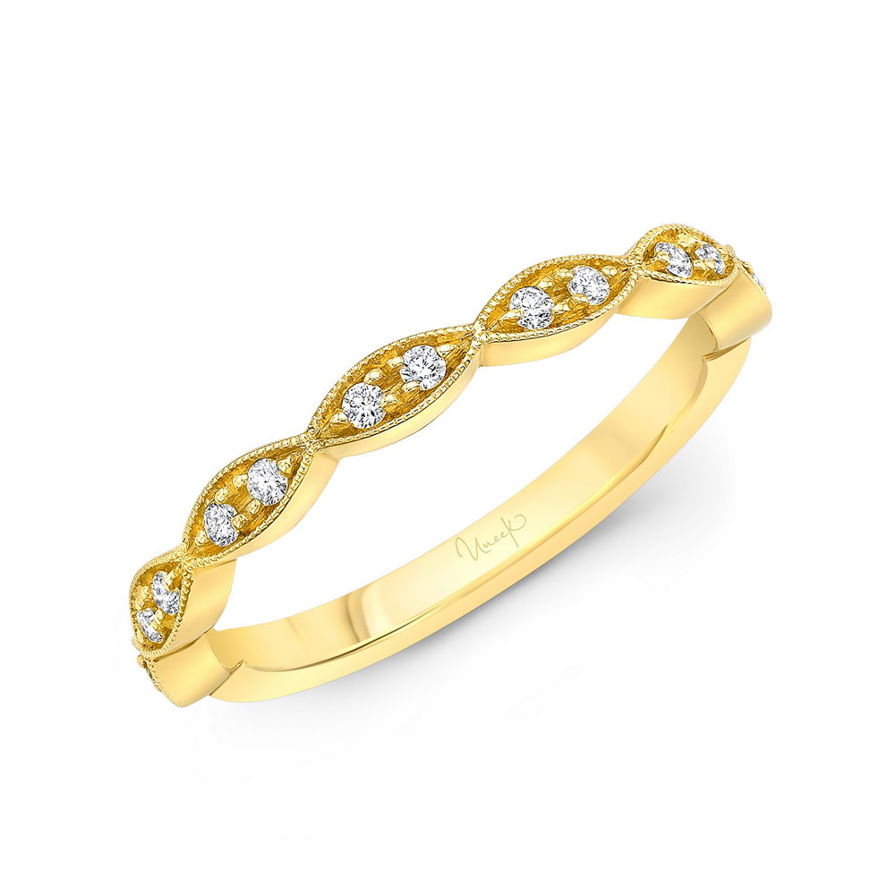 This us collection 1-row wedding ring is great for any celebration. Designed with 14 round diamonds weighing 0.15 carats in a glamorous setting.