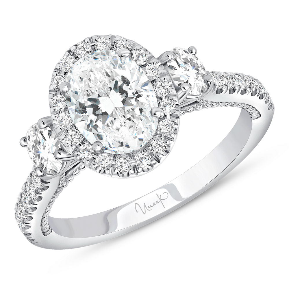Uneek Us Collection 3-Stone-Halo Oval Shaped Engagement Ring