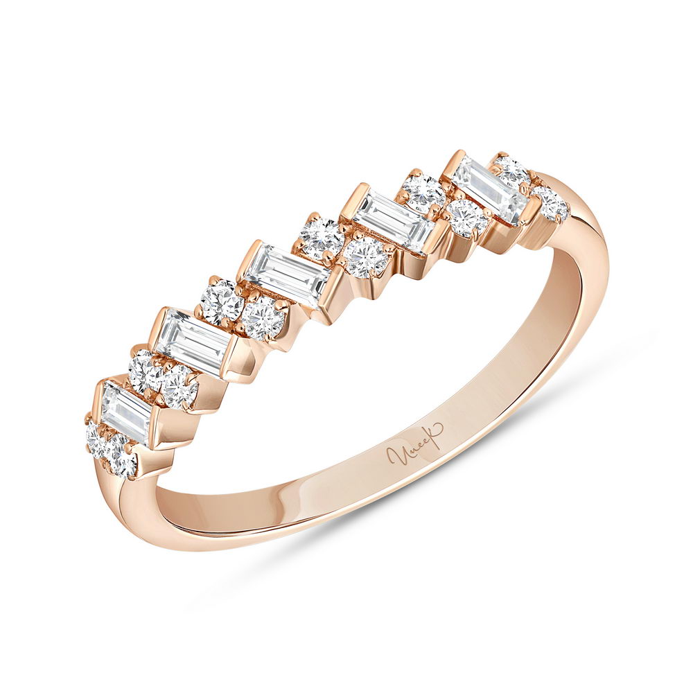 This us collection fitted wedding ring is stunning as a gift. Engineered with 12 round diamonds weighing 0.18 carats, and 5 baguette diamonds with a total weight of 0.20 carats in an attractive finish.