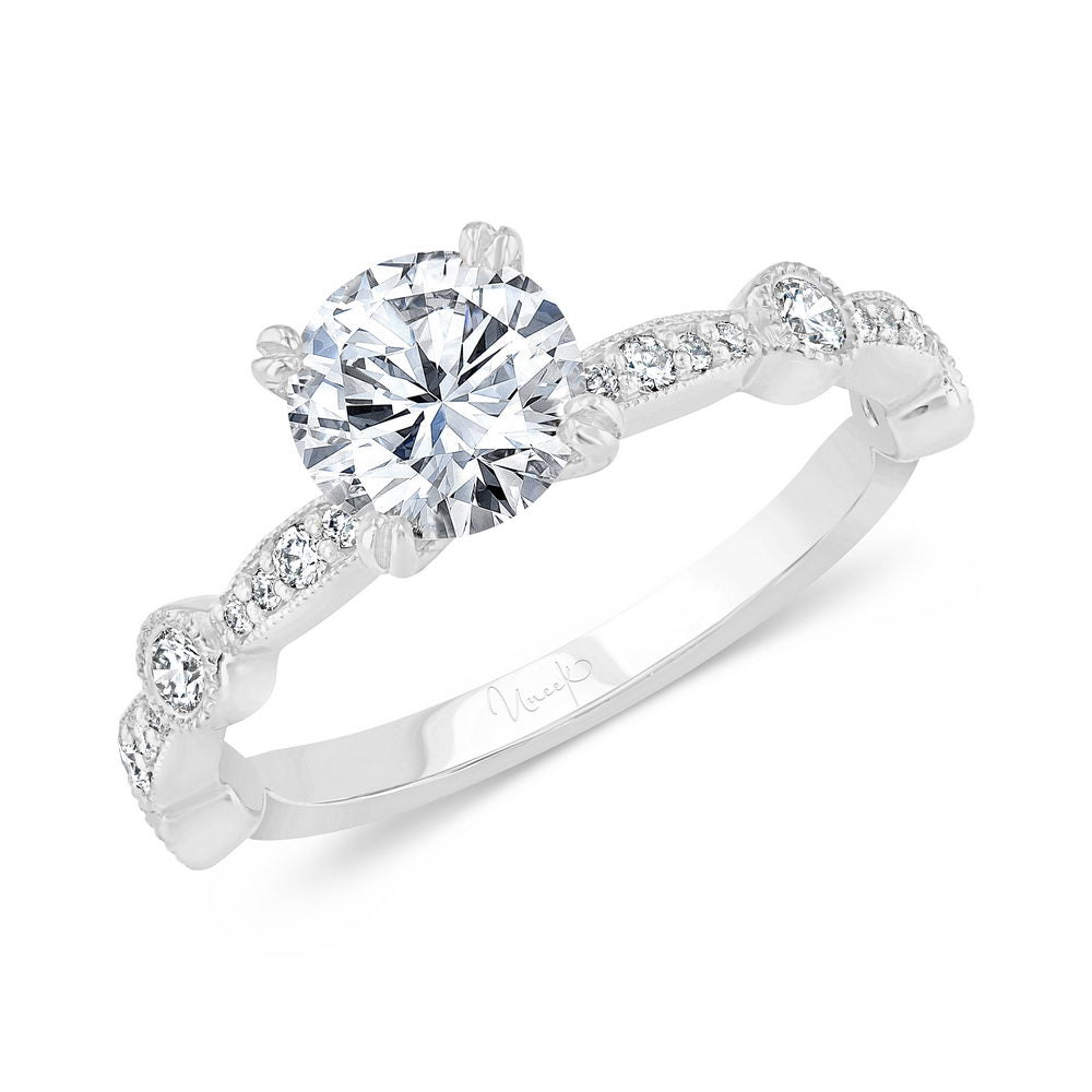 Uneek Us Collection Round Diamond Engagement Ring with Milgrain-Trimmed Pave Bars and Bezel Station Accents