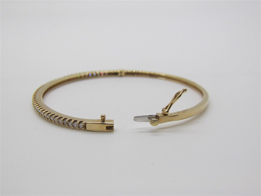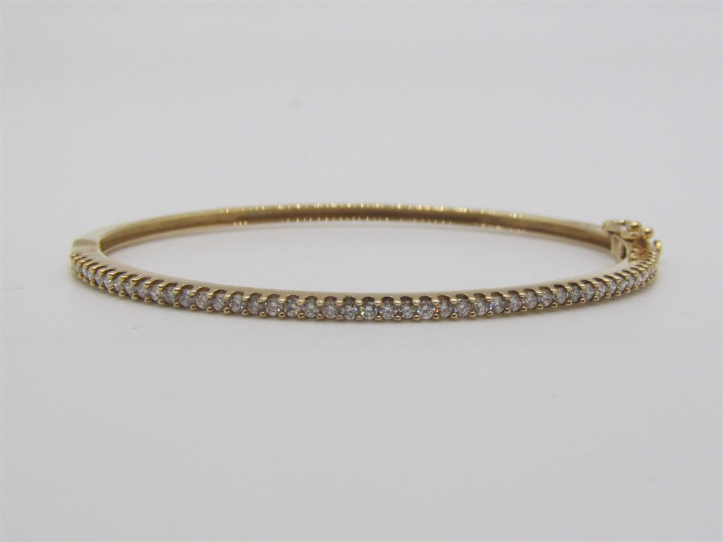 14 KT. YELLOW GOLD SHARED PRONG BANGLE BRACELET WITH .98 CTW. ROUND DIAMONDS; CLARITY: SI 1-1 COLOR: G-H