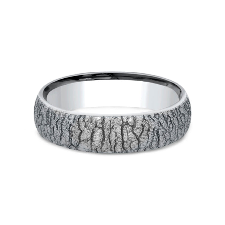 6mm, Comfort fit White Cobalt Tree bark patterned center