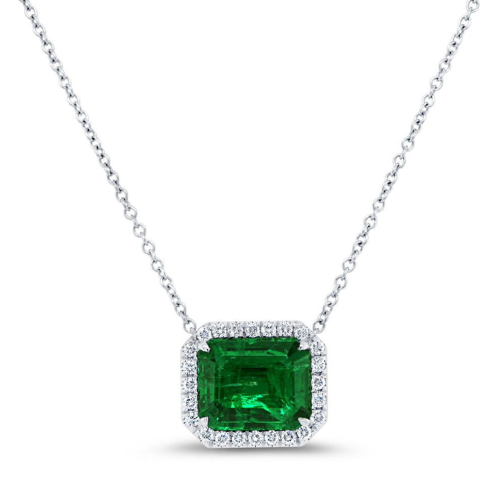 Uneek Precious Collection Halo Emerald Cut Emerald Brooch Pendant